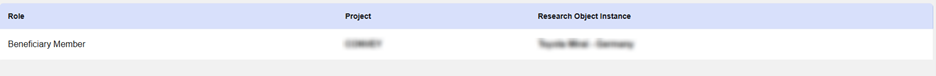 For each project or research object your account is assigned as a participant, there is separate row mentioning your accounts project role, the Project URL, the research object URL. Click on the respective project or research object URL to redirect to their entity page.